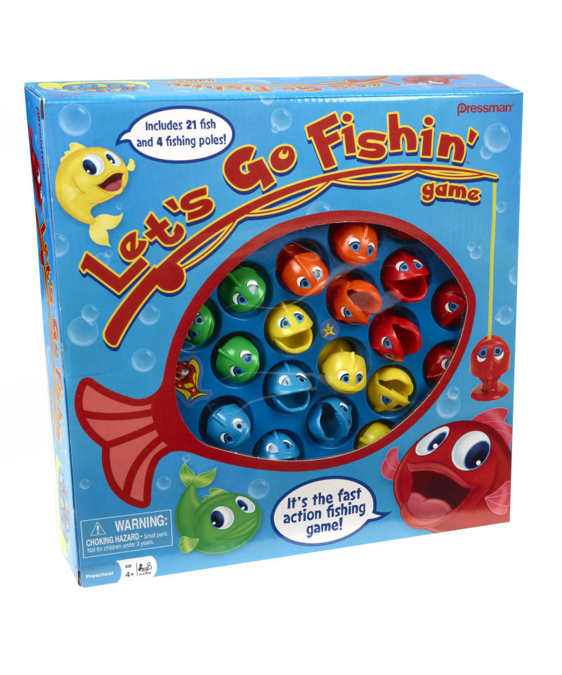 Get ready for some REEL fun with Let's Go Fishin', the original version of a well-known and well-loved fishing game that parents will remember playing when they were kids. This classic kids game teaches hand-eye coordination as players use their mini fishing poles to try to catch the most fish. The challenge is that the board game spins, and the fish open and close their mouths. With 21 fish and 4 fishing rods, there's plenty of fishing fun in this fast-paced competition, and these fish are as hungry as hungry hippos. Let's Go Fishin' is a fishing toy that's great for playing at home or as a travel game–it will lure kids into playing over and over again. For 1-4 players, ages 4 and up. Game Contents: Deluxe Motorized Game Unit, 21 Colorful Fish, 4 Plastic Fishing Rods, Complete Instructions, Requires 1C Battery (not included).