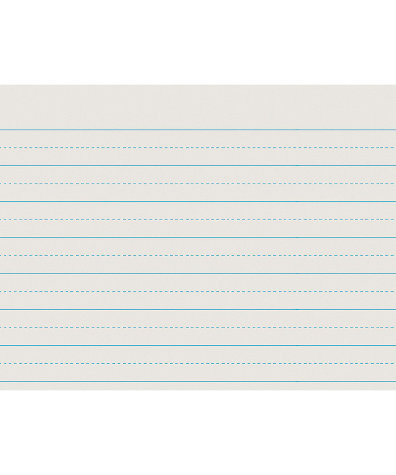 Clean white newsprint paper has light blue ruling on both sides makes great practice paper. Sheets are ruled 1" the long way, and feature a 1/2" dotted midline to serve as a guide for controlled writing. This ruling is recommended for Grade 1. Includes 500 sheets per package. Measures 11" x 8.5".