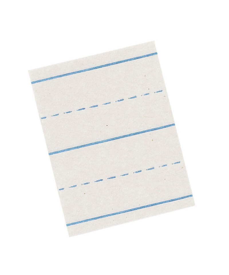 - Clean white newsprint printed both sides with 6" blank space at the top of the sheet and ruled with a dotted midline