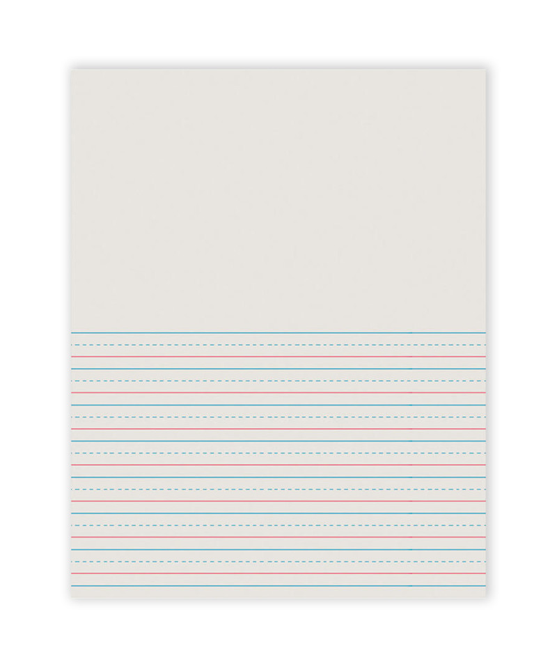 - Clean White newsprint that's 1/2" ruled on both sides with 1/4" blue dotted midline, red baseline and 1/4" skip space