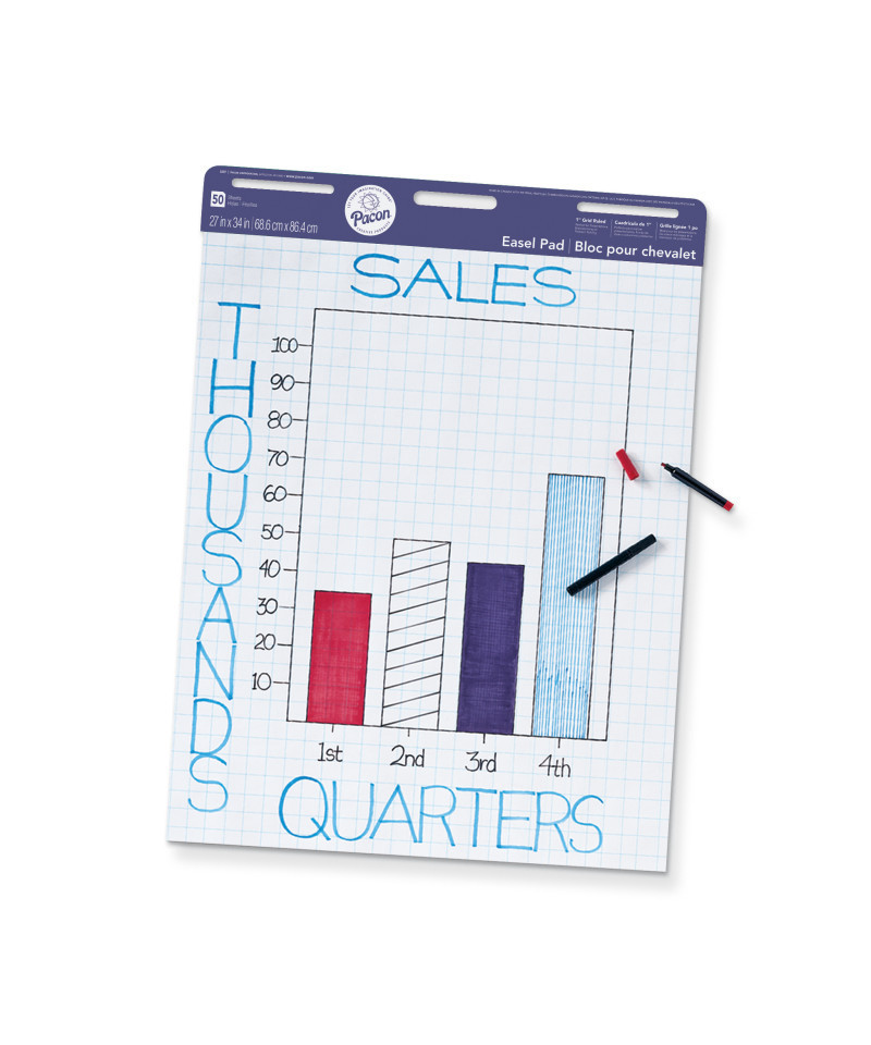 This pad works great for meetings, presentations and classroom anchor charts. This pad contains high quality white sulphite bond paper, 1" grid ruled on one side, and a convenient carrying handle for easy transportation. An extra heavy chipboard back provides a durable writing surface. Measures 27" x 34". Includes 50 sheets.
