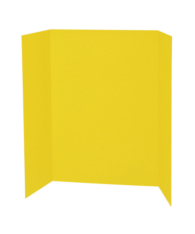 Presentation Boards are tri-fold, single wall corrugated display boards used for projects, booths, science fair presentations and all types of displays. Boards have a smooth, flat, uniform surface to accept many types of medium. Boards are Yellow on the front and Natural Kraft on the back. The full display size is 48" x 36" and the board folds to 24" x 36". Recyclable.