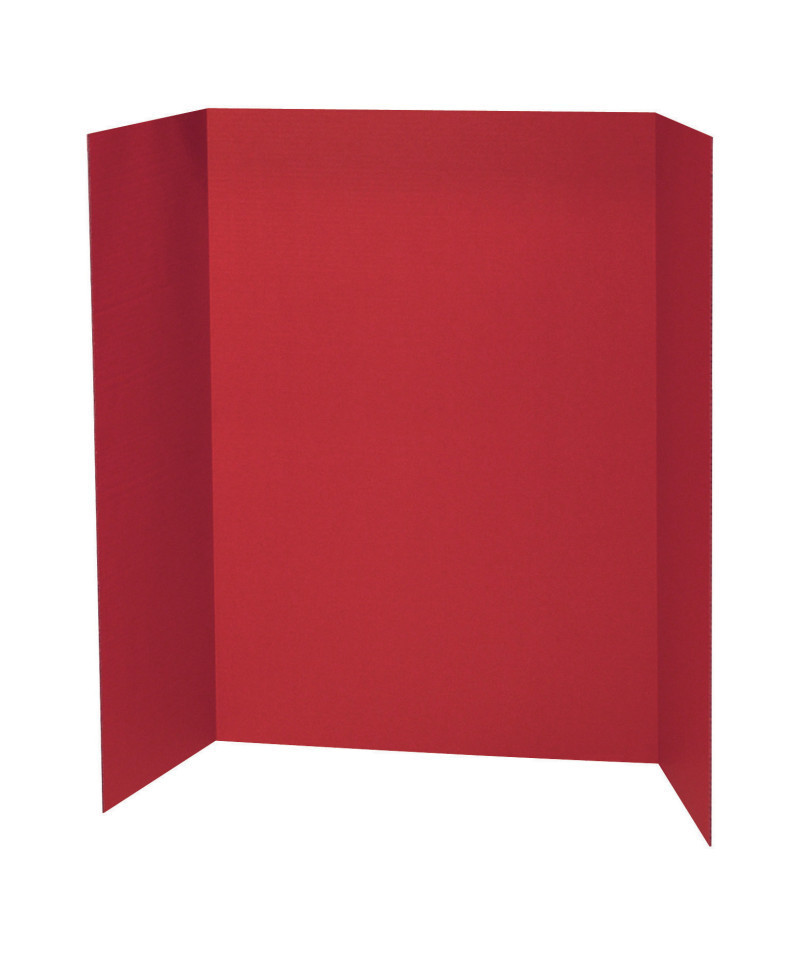 Presentation Boards are tri-fold, single wall corrugated display boards used for projects, booths, science fair presentations and all types of displays. Boards have a smooth, flat, uniform surface to accept many types of medium. Boards are Red on the front and Natural Kraft on the back. The full display size is 48" x 36" and the board folds to 24" x 36". Recyclable.