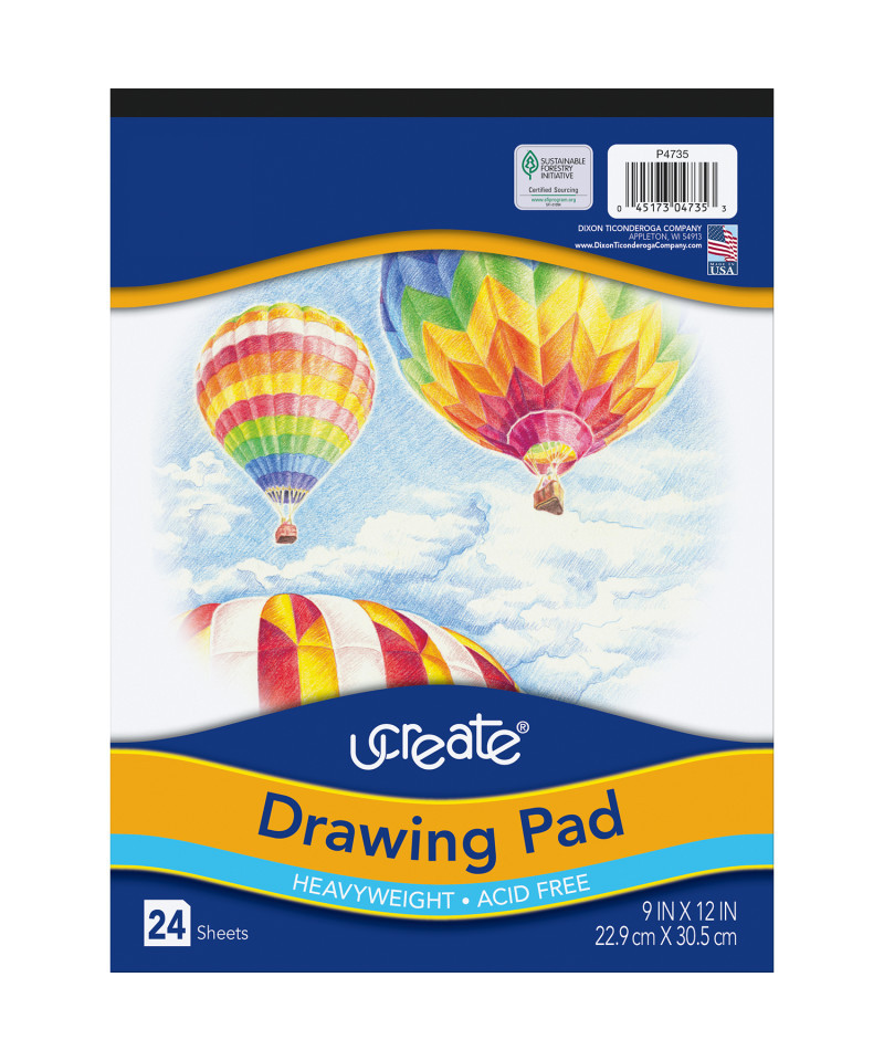 High quality Heavyweight White sulphite drawing paper in a pad format. Ideal for illustrations and final drawings. Includes 24 sheets per pad. Acid-free and Recyclable. Measures 9" x 12".