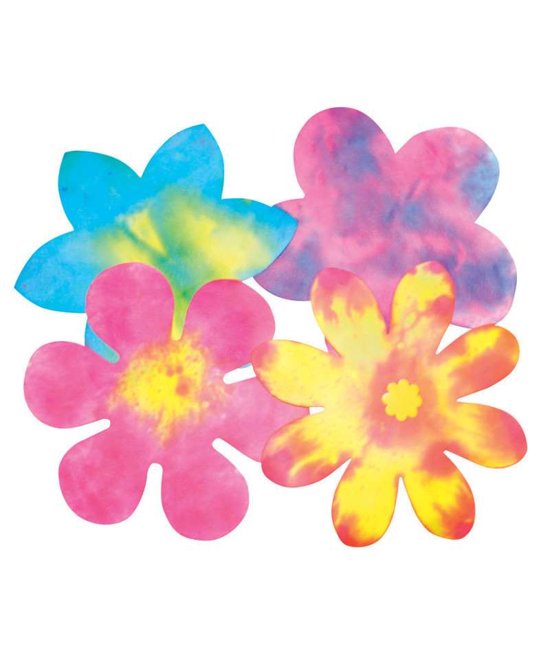 Spray liquid watercolor paint or food color over fabric-like paper with interesting texture. Watch the colors flow and blend. Once the paint is dry, embellish with markers, crayons and glitter glue. Beautiful results are guaranteed! Great for all ages and skill levels. Flowers measure 9" (23 cm). Each pack includes 80 sheets and an idea guide.