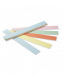 Printed on sturdy tagboard that performs well with inks, pencils and crayons. Ruled 1.5" with .75" dotted midline on one side, and a single line ruled on the opposite side. Assorted colors include Blue, Pink, Canary, Green and Orange. Measures 3" x 24". Use for teaching basic skills, word wall activities, tags and more! Includes 100 strips.