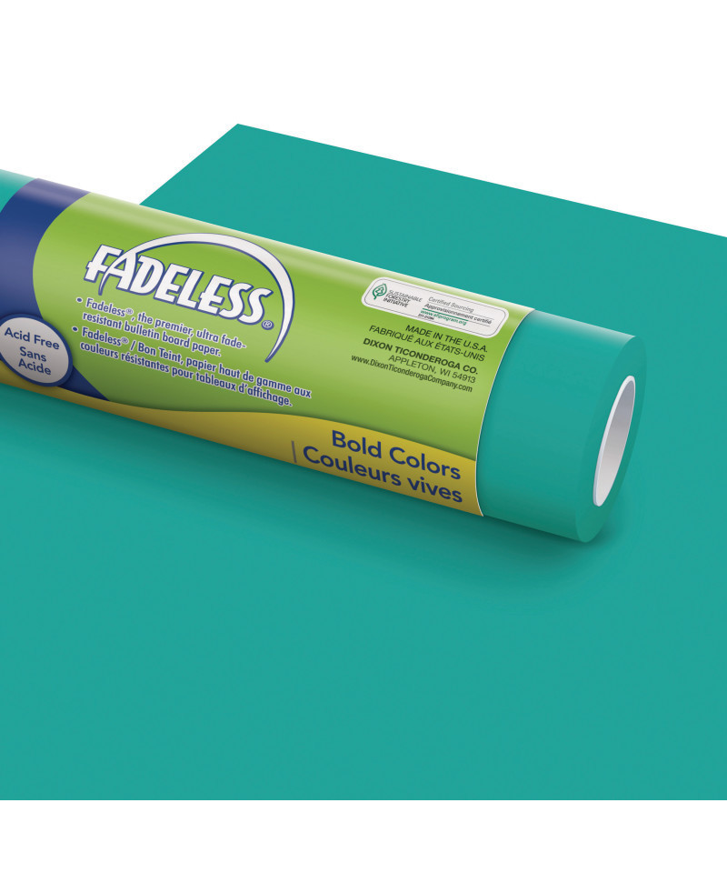 Let Fadeless® spark your bulletin board and classroom décor ideas! Create fun and inviting classrooms with this premier, ultra fade-resistant paper. Use on bulletin boards, doors, file cabinets, and more. Durable construction and acid-free qualities create long-lasting displays. Design or color on one side, white on back. From backdrops to 3D paper sculptures, Fadeless is the ultimate choice. Be creative, be colorful, be bold with Fadeless papers. Also perfect for backgrounds, displays, table skirting, and party decorations. Each roll measures 48" x 12'. Sold as a pack of 4 rolls.