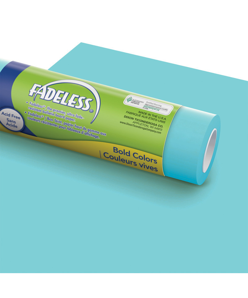 Let Fadeless® spark your bulletin board and classroom décor ideas! Create fun and inviting classrooms with this premier, ultra fade-resistant paper. Use on bulletin boards, doors, file cabinets, and more. Durable construction and acid-free qualities create long-lasting displays. Design or color on one side, white on back. From backdrops to 3D paper sculptures, Fadeless is the ultimate choice. Be creative, be colorful, be bold with Fadeless papers. Also perfect for backgrounds, displays, table skirting, and party decorations. Each roll measures 24" x 60'. Includes 1 roll.