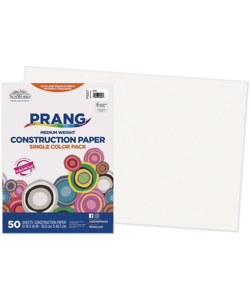 Prang® Medium Weight Groundwood Construction Paper provides the best value in school grade construction paper. It is the perfect solution for school projects and other arts and crafts. It has bright and consistent colors, is slightly textured and cuts and folds evenly without cracking. Recyclable. Measures 12" x 18". Each pack includes 50 sheets.