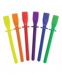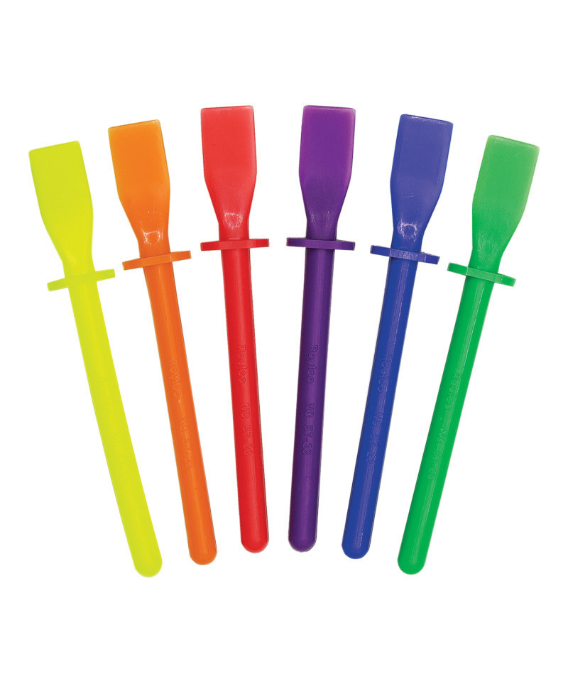 Take the mess out of craft time! Great for spreading glue and mixing paint. A handy tool for every classroom. Useful in art projects. Flexible plastic for more even coverage of paste or glue. No sticky fingers. Also effective as a sculpting tool for modeling clay. Assorted colors. 10 per pack.