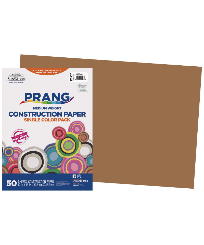 Prang® Medium Weight Groundwood Construction Paper provides the best value in school grade construction paper. It is the perfect solution for school projects and other arts and crafts. It has bright and consistent colors, is slightly textured and cuts and folds evenly without cracking. Recyclable. Measures 12" x 18". Each pack includes 50 sheets.
