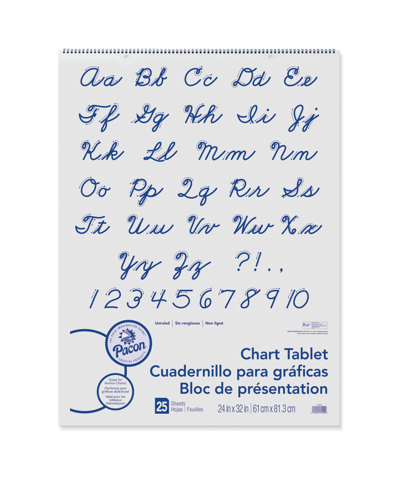 This Chart Tablet features White sulphite bond paper that is spiral bound to stiff covers. It is 2-hole punched for easy hanging. The unruled paper works well for classroom anchor charts, posters and other teaching aids. Measures 24" x 32". Each pad includes 25 sheets.