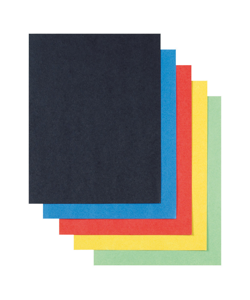- Assortment contains 10 sheets each of 5 primary colors: Black, Blue, Red, Yellow and Green