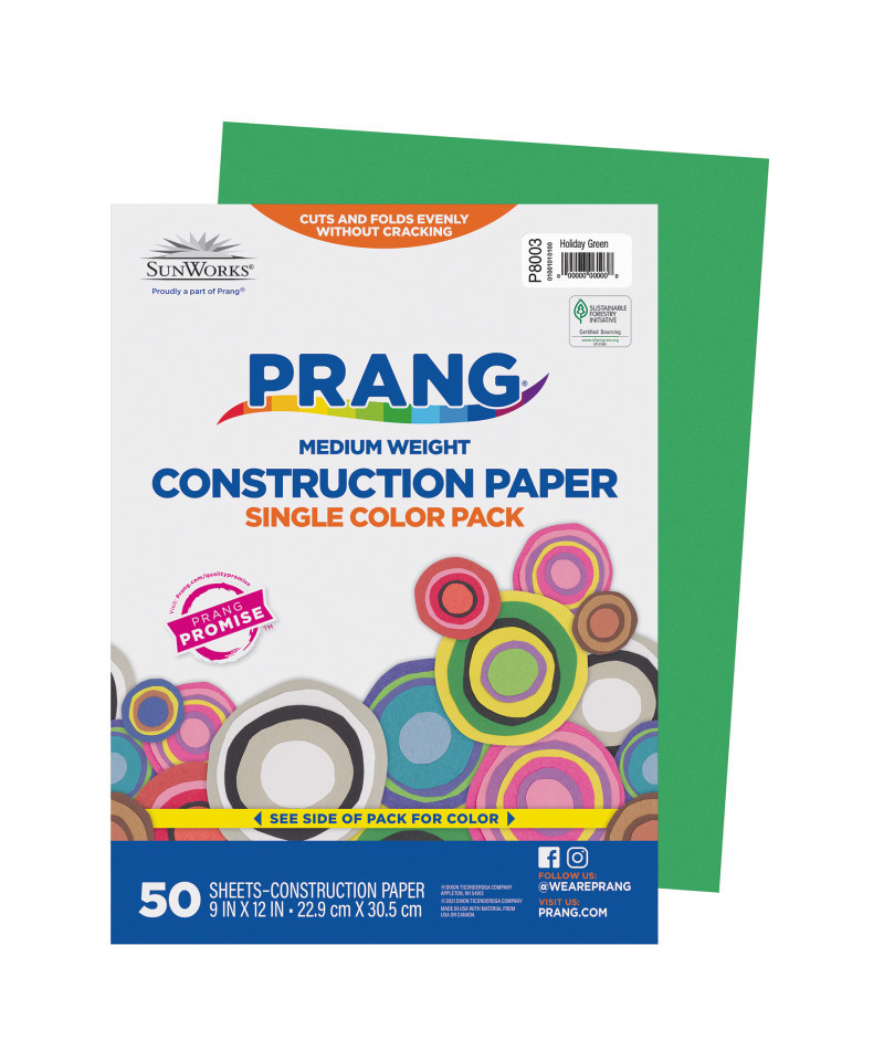Prang® Medium Weight Groundwood Construction Paper provides the best value in school grade construction paper. It is the perfect solution for school projects and other arts and crafts. It has bright and consistent colors, is slightly textured and cuts and folds evenly without cracking. Recyclable. Measures 9" x 12". Each pack includes 50 sheets.