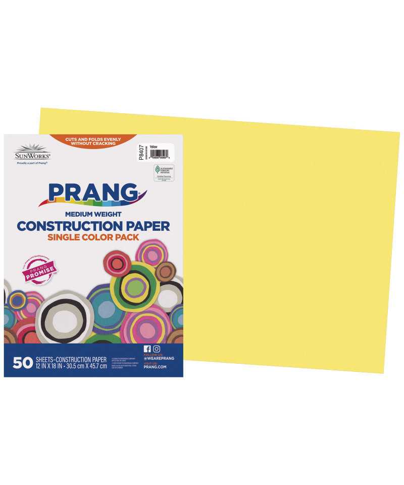 Prang® Medium Weight Groundwood Construction Paper provides the best value in school grade construction paper. It is the perfect solution for school projects and other arts and crafts. It has bright and consistent colors, is slightly textured and cuts and folds evenly without cracking. Recyclable. Measures 12" x 18". Each pack includes 50 sheets.