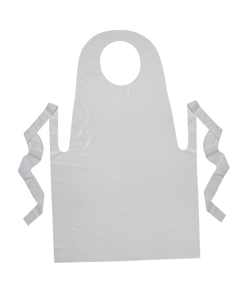 Every little masterpiece needs protection! Child size plastic aprons with back tie straps protects clothes from spills and stains. Aprons measure 24" x 35". Each pack includes 100 white aprons.