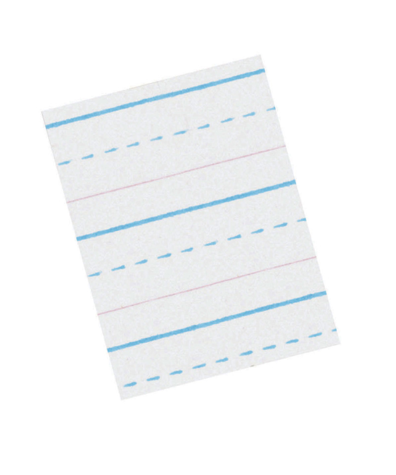 - 1/2" ruled on both sides with 1/4" blue dotted midline, red baseline and 1/4" skip space