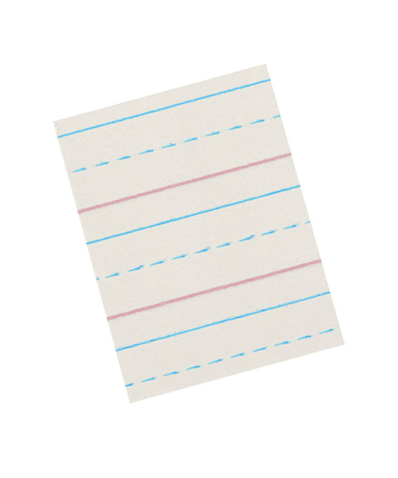 - 1/2" ruled on both sides with 1/4" blue dotted midline, red baseline and 1/4" skip space