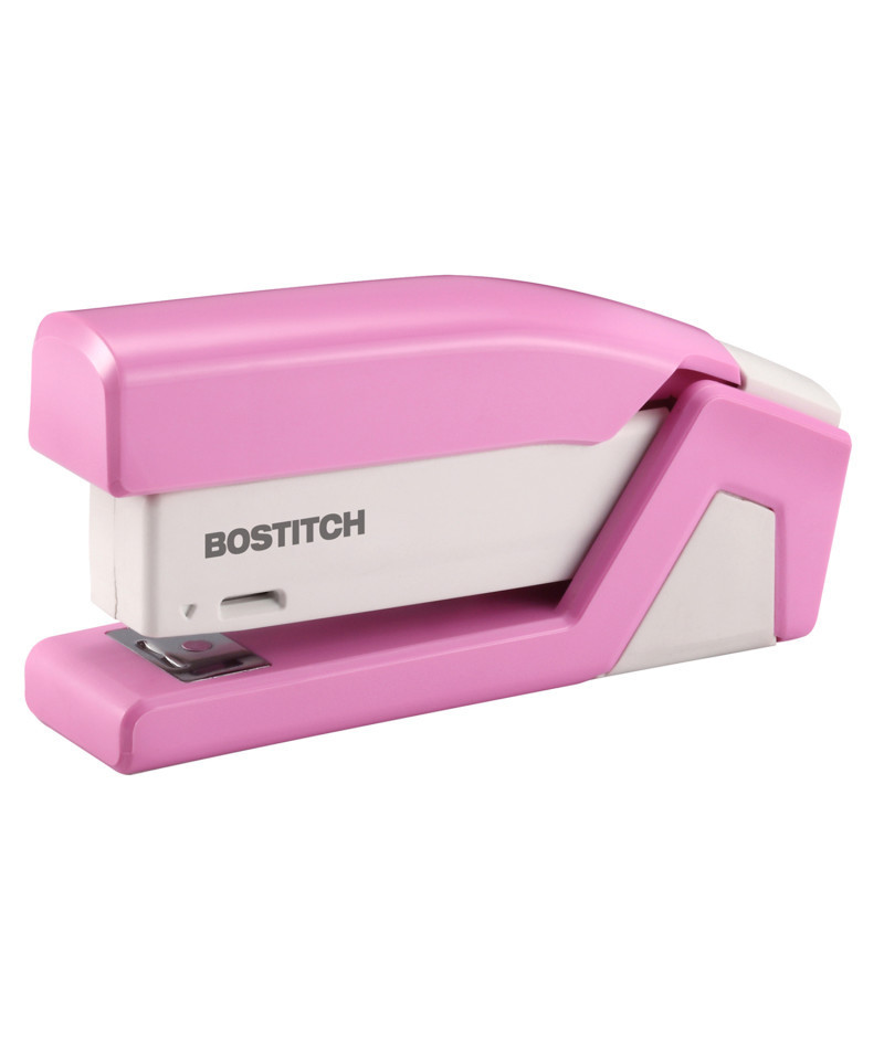 Work pretty in pink when you use this Bostitch InCourage™ pink desktop stapler. For stapling that is 80% easier and requiring one finger, this 20-sheet stapler delivers quality performance in a style that fits your aesthetic. Lightweight and slim for effortless handling, it features a built-in stapler remover to mend all mistakes and a hidden staple storage compartment for keeping sticks of staples close. With No-Jam™ technology and the ability to open up for specialty use such as bulletin board tacking, this vertical standing stapler has something that really sets it apart. A portion of the proceeds from this purchase is donated to cancer charities via the Amax® Spirit Foundation™.