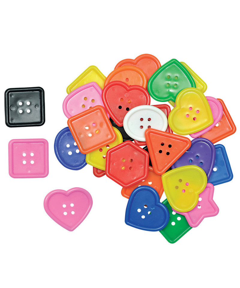 Really Big Buttons™ are perfect for little hands! Introduce counting, sorting and shape recognition with extra big buttons in bright colors. Big holes for easy stringing or use in collage work. Buttons measure 2" x 2" (5 x 5cm) and include holes for stringing. Each pack includes 60 buttons in 8 different designs and assorted bright colors.