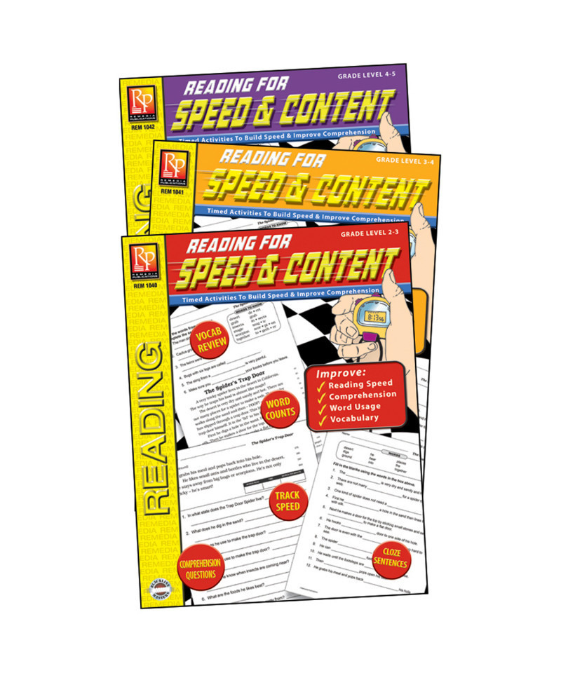 Fluency is a key component of reading comprehension, and these ready-to-use activities provide plenty of practice in both speed and comprehension. Each book features 14 short, high-interest stories sure to capture students' attention while they race the clock to improve their reading speed. After reading students show their comprehension through short-answer questions and cloze sentences. Turn the stories into timed reading exercises to get students to read at a faster pace! Students can read the story then record the amount of time it took them to read, or set a time limit and track how far they got. End-of-line word counts make it quick and easy to figure the number of words read. A great way to improve reading confidence as well as overall comprehension!