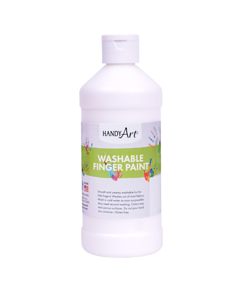 Handy Art® Washable Finger Paint offers vibrant, fast drying color with a smooth and creamy texture. Never have little hands had so much fun and been so clean afterwards! Handy Art® Washable Finger Paints are available in a variety of sizes and colors. Handy Art® Washable Finger Paints are designed to wash out of most clothing with soap and cold water. Handy Art® Washable Finger Paints are certified AP non-toxic. Each bottle is 16 oz.