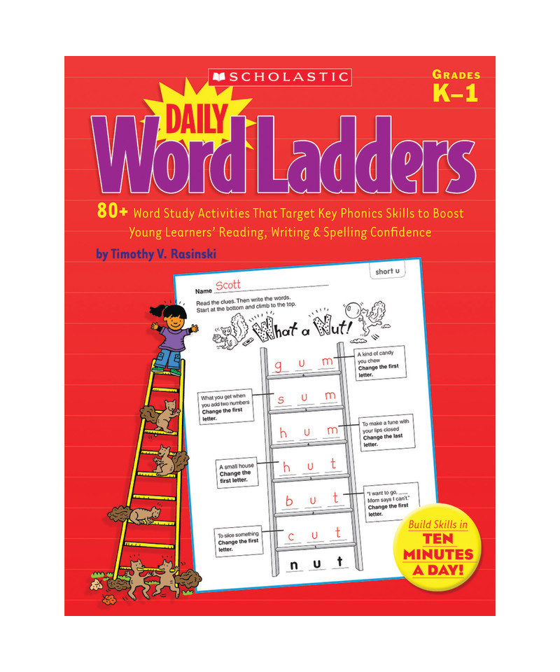 Students climb to new heights in reading and writing with these fun, engaging, reproducible word-building games! Students read clues on each ladder rung, then change and rearrange letters to create words until they reach the top. All the while, they're analyzing sound-symbol relationships, developing phonemic awareness, broadening their vocabulary, and building spelling skills to become better readers.