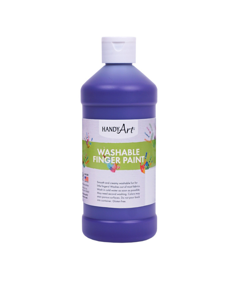 Handy Art® Washable Finger Paint offers vibrant, fast drying color with a smooth and creamy texture. Never have little hands had so much fun and been so clean afterwards! Handy Art® Washable Finger Paints are available in a variety of sizes and colors. Handy Art® Washable Finger Paints are designed to wash out of most clothing with soap and cold water. Handy Art® Washable Finger Paints are certified AP non-toxic. Each bottle is 16 oz.