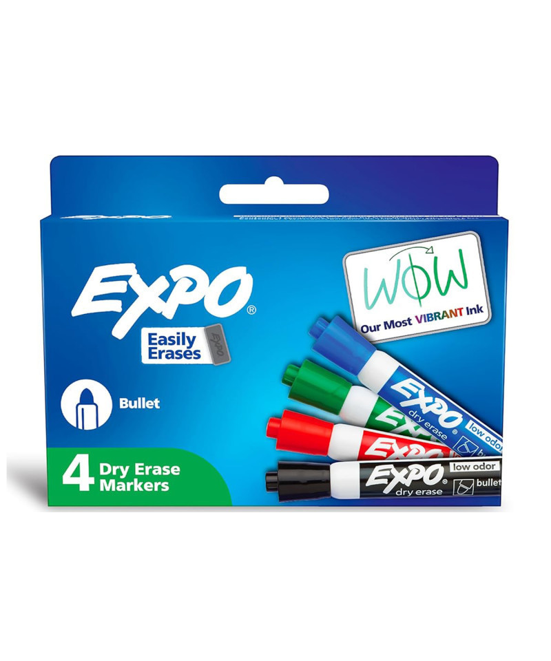 Keep your classroom engaged, create compelling presentations and stay organized at home with Expo Low Odor Dry Erase Markers. These whiteboard markers are available in a bold range of colors that produce consistent marks with less skipping. Use Expo dry erase markers to track, schedule and present your point in a brilliant fashion. Intense, bold colors take center stage even from a distance. You can get Expo wet or dry erase markers in a wide range of tip sizes, ensuring your point gets across.