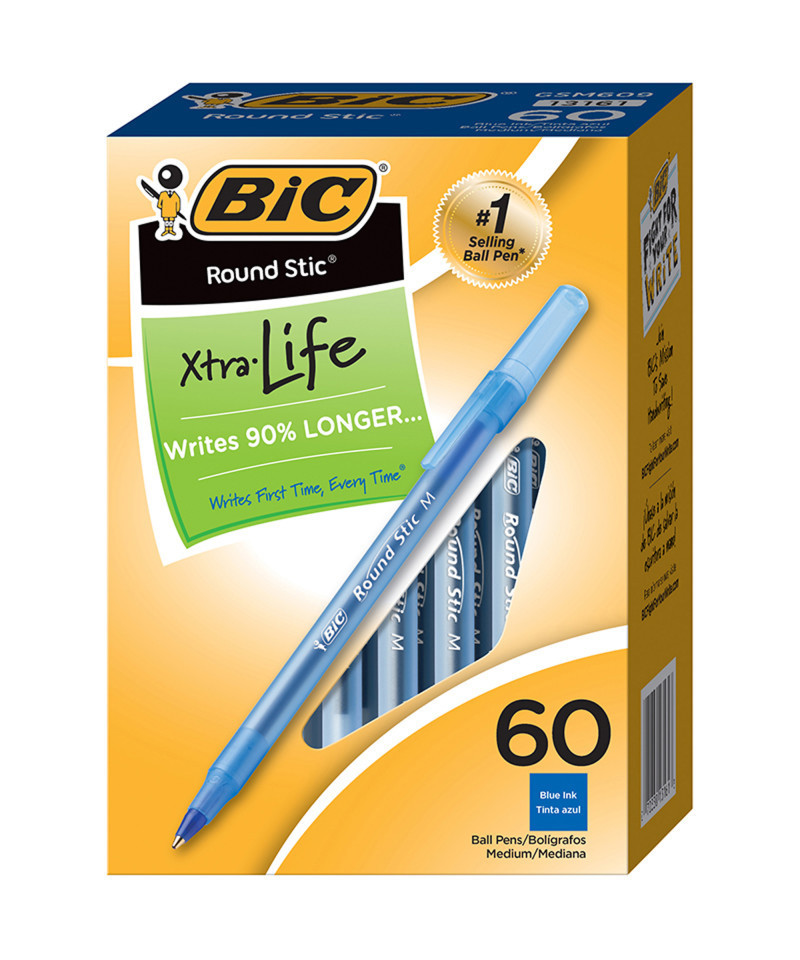 The BIC Round Stic Xtra Life Ball Pen is a dependable favorite that offers performance and value. This pen writes 90% longer on average than Papermate® InkJoy® 100 Ball Stick Pen.** It features a versatile 1.0mm medium point that creates vivid lines, making it ideal for a variety of writing applications from note-taking to doodling. The pen comes with a reliable tungsten carbide ball point that spreads the ink smoothly and evenly. The flexible round barrel rests comfortably in your hand, while the translucent barrel shows the remaining ink supply, so you know when you're running low. BIC Round Stic Xtra Life Ball Pens are non-refillable.