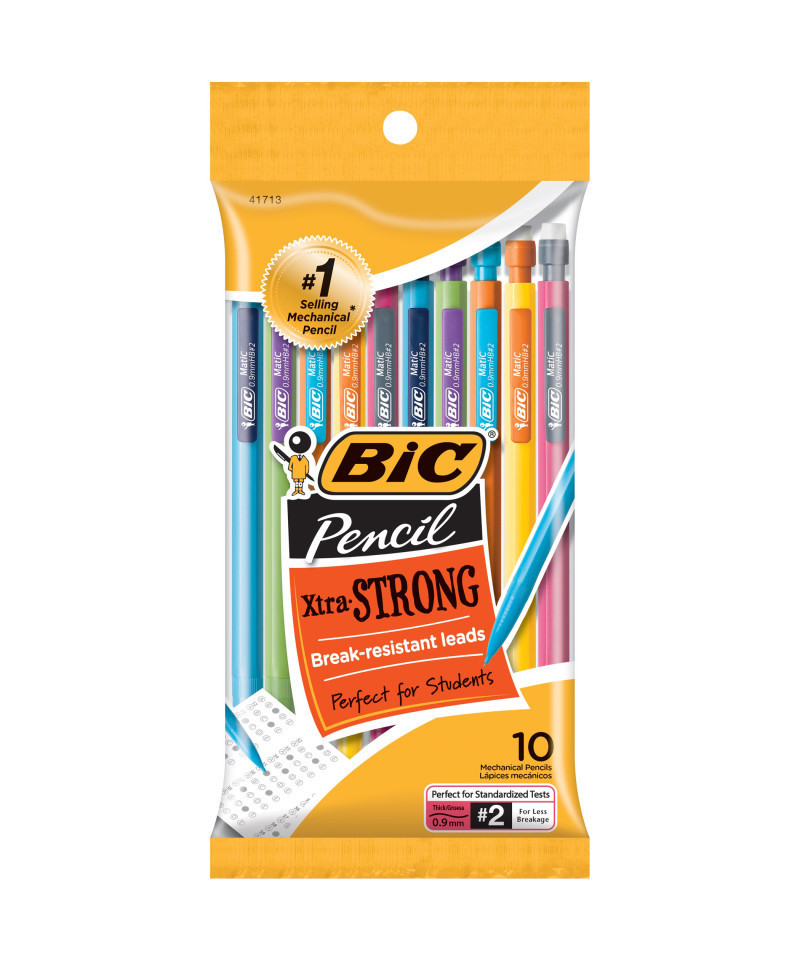 BIC Xtra-Strong Mechanical Pencils are designed to be durable with strong 0.9mm leads that resist breaking. The thick, smooth-writing #2 lead never requires sharpening and is always ready to write when you are, making this pencil perfect for students and the smart choice at test time. The lead advances quickly and easily with a simple click of the eraser, does not smudge and erases cleanly, helping keep your work looking neat. Students of any age will love the bright colorful barrels and contrasting vibrant clips.
