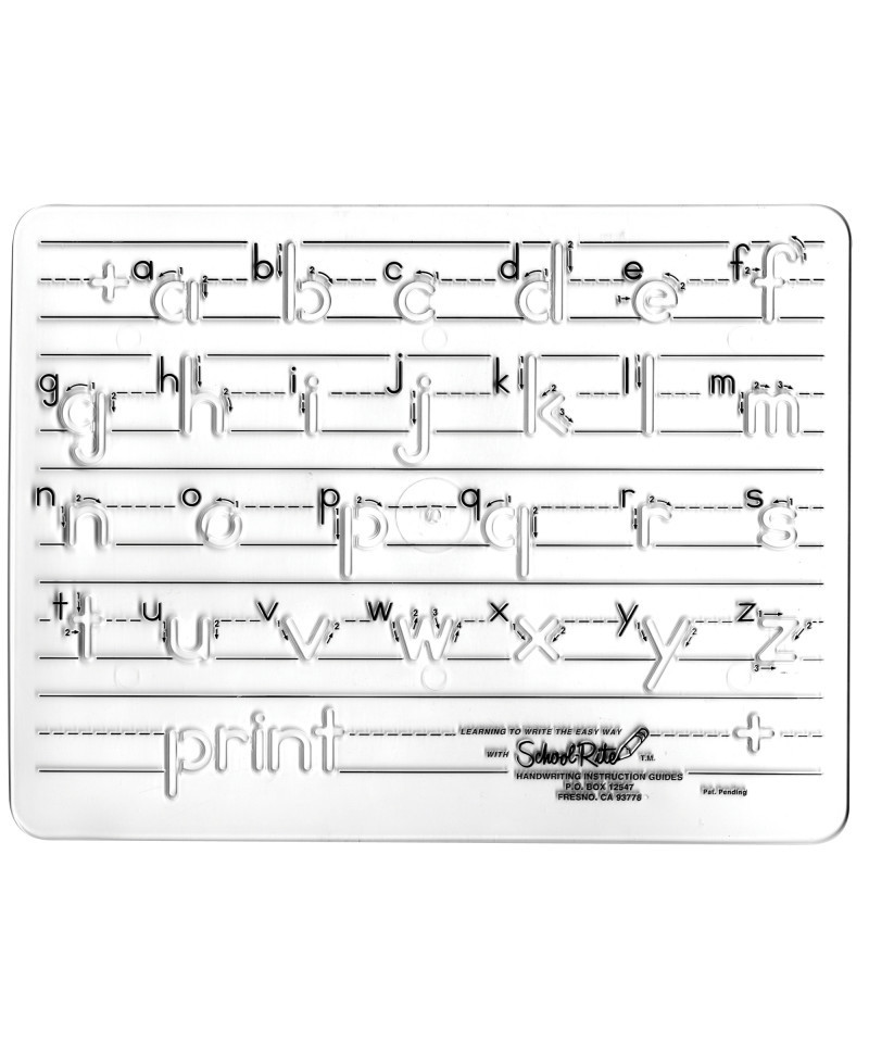 Handwriting Instruction Guides, Lower Case Manuscript Give practice in forming the contour of each letter, coordinating hand and eye movement, building fine motor skills and developing standard stroke patterns. These plastic templates mechanically guide a child's hand through each letter configuration, forcing the hand to lift where normal lift occurs in the handwriting sequence. Measures 8-1/2" x 11" with 1" letters.