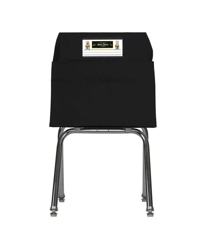Seat Sack offers a Medium, 15-inch, black storage chair pocket for classroom organization that features a durable laminated fabric that is certified flame-resistant and machine washable. The Seat Sack student organizer has a 10-inch-deep pocket and a 2-inch gusset that offers ample storage space to accommodate tech devices, books, papers, school supplies and more. Fits chairs that measure 12 inches or less along the very top and widen to 15" at the pocket. Perfect for classroom storage, teaching vital organization skills and keeping classroom materials managed.