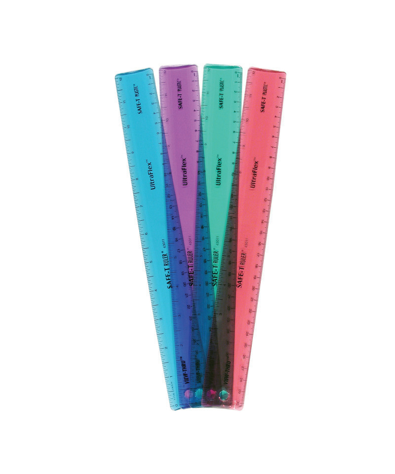 Twist and roll this UltraFlex™ 12" / 30 cm ruler to measure curved and angular surfaces accurately. SAFE-T® Plastic will not break or shatter under normal classroom conditions. Features both U.S. customary and metric scales. Transparency lets students see what they're measuring. Ruler regains its flat shape when not in use. Colors vary.