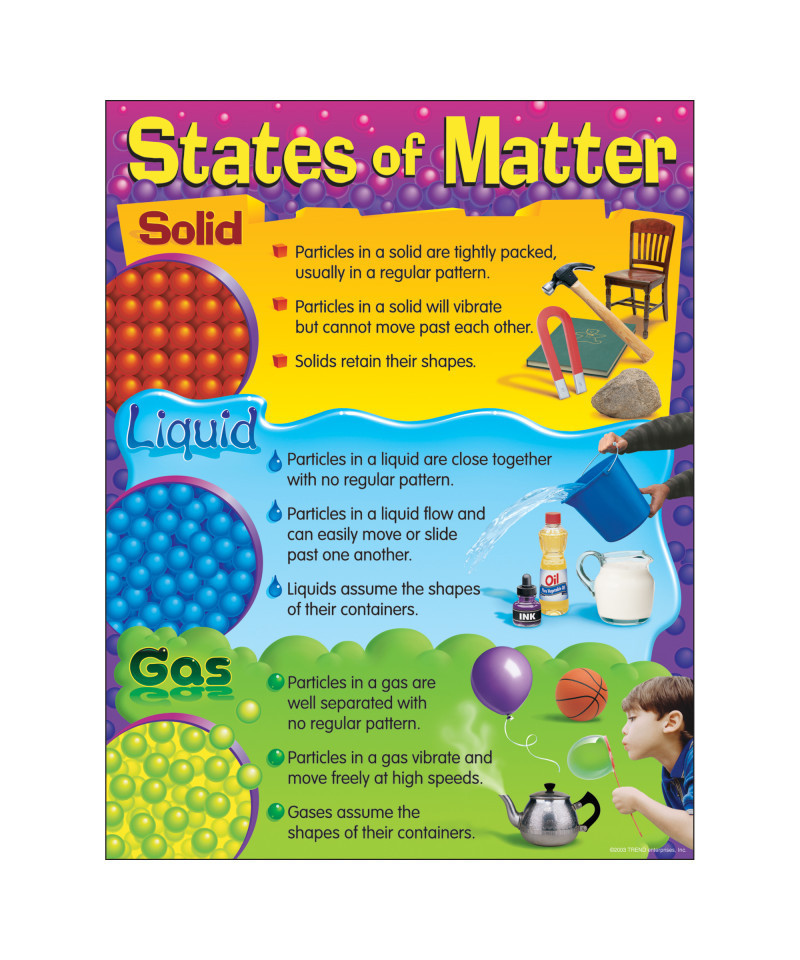 Solid? Liquid? Gas? Discover properties of the states of matter! Durable. Extra Value: Reproducibles on back. 17" x 22".