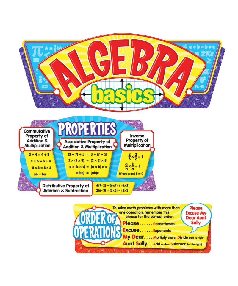 - Six mini charts help introduce key algebra terms and skills. Leave up for handy reference.