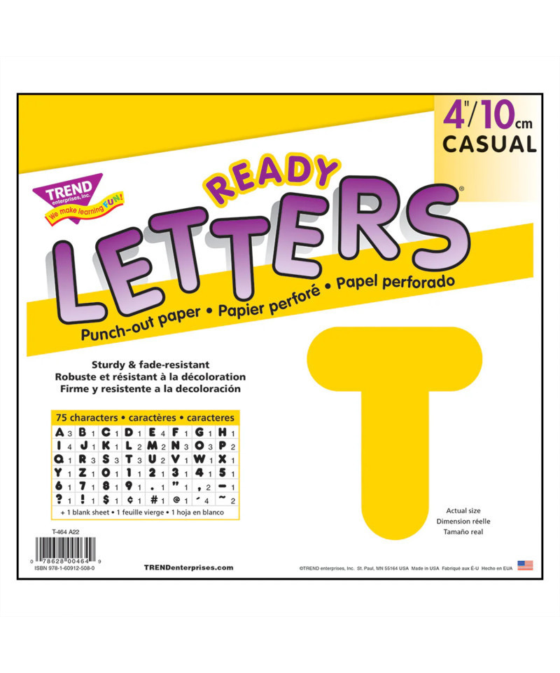 Lively letters, limitless possibilities! Convenient, reusable, and easy to use. Great for student work displays, bulletin boards, signs, banners, news boards, learning activities, labeling, and much more! Fade-resistant colors coordinate with TREND products. Durable. Includes 50 uppercase letters, 10 numerals 0-9, 11 punctuation marks, and 1 blank sheet.