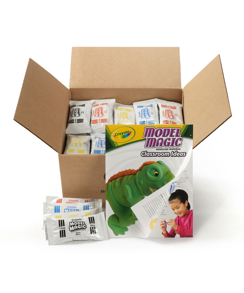 Handy classpacks give you more control over the quantity given out. No more wasted product! Model Magic is air-drying, non-staining, and easy to manipulate material. Colors can be blended to create even more colors! Decorate with materials like markers, glitter glue, paint, tin foil, or other components readily available in the classroom or art room to create multiple day lessons. Sturdy, re-usable packaging makes storing & organizing simple. FREE colorful lesson plan booklet included with every Classpack! Includes 75 - 1 oz. packs of Model Magic Modeling Compound; 21 packs of white, and 18 packs each of red, blue, and yellow.