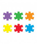 - Colorful puzzle pieces are precut and ready to use in blue, orange, purple, green, red, and yellow.