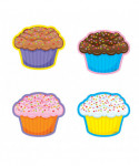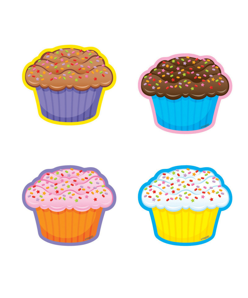 - Frosted cupcakes (with sprinkles!) are precut and ready to use in yellow, blue, orange, and purple.