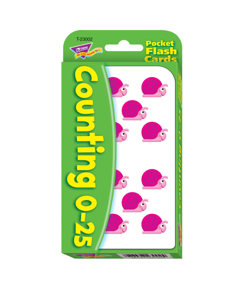 Flashy by design! Build student confidence and skills using fun-filled flash cards. This pack, complete with activities, builds counting skills and number values 0-25. Watch students enjoy learning and build skills on their own or with their friends... at school, home, or on the go! Durable, no-see-through cards. Quick sorting, rounded corners. Self-checking, answers on card backs. 56 two-sided cards, 3.125" x 5.25". For ages 3-6.