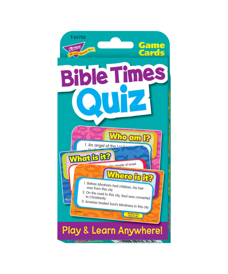 Game play helps children learn important Bible stories and fun facts. An exciting way to discover the Bible! Two-sided quiz cards feature answers on reverse. A unique, engaging learning supplement for Christian classrooms, activity centers, home, and travel. 56 two-sided cards, 3.125" x 5.25". Activities included. For ages 7 and up.