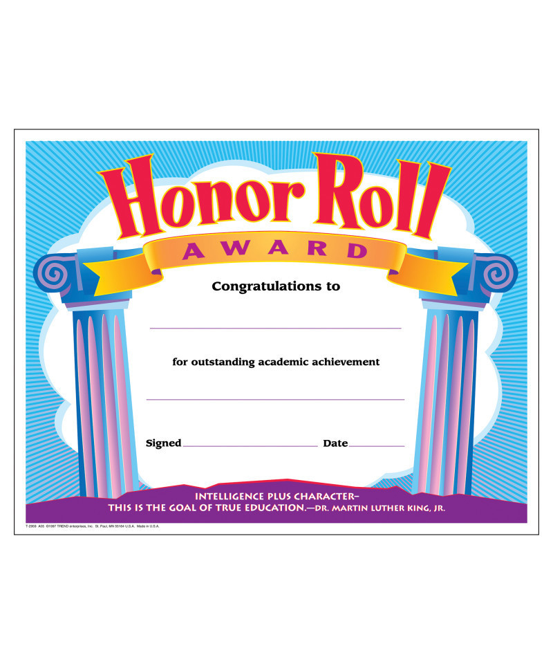 TREND Honor Roll Award Colorful Classics Certificates, 30 ct