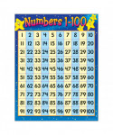Colorful reference grid showing numbers 1 to 100 in rows of ten. Back of chart features reproducible activities, subject information, and helpful tips. 17" x 22" classroom size.