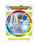 What's the weather like today? Interactive chart includes arrows to cut out so you can "point" to weather photos (Sunny, Cloudy, Windy, Rainy, Partly Sunny, Snowy). Durable. Extra Value: Reproducibles on back. Measures 17" x 22".