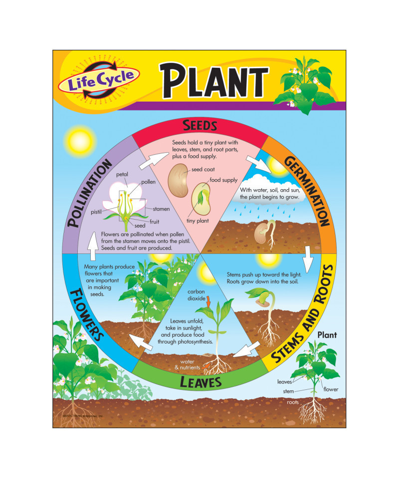 - Clear, colorful, easy-to-read design helps teach about the life cycle stages of a plant.
