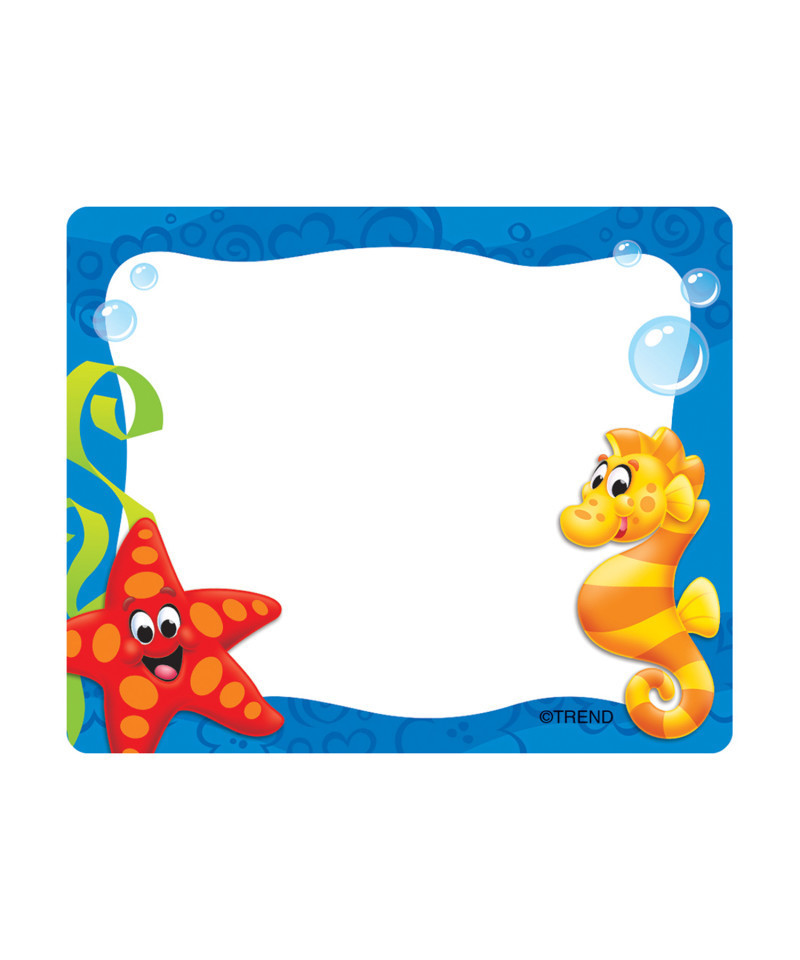 Bright and welcoming labels have a smooth finish for easy, no-smear writing with markers or pens. Perfect for name tags because labels stay put and won't leave residue on clothes. Also great for cubbies, lockers, storage boxes, envelopes, and learning centers. 2 1/2'' x 3''; self-adhesive. 36 per pack. Coordinates with Sea Buddies Collection.