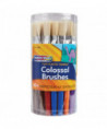 Great big brushes are perfect for small hands, giving young artists better control. These flat brushes hold a lot of paint for ease-of-use. Comes in a durable plastic canister that holds 30 brushes.