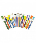 A terrific starter set of 25 brushes in a great variety of sizes and shapes from small to large, bristles to foam. This set of brushes work well with all types of paint media. Set includes tapered round tip art/black bristle round art brushes and is suitable for children of age 4 - 6 years. Also includes tapered round tip art brushes and black bristle round art brushes. Includes flat top art sponges, wedge tip sponges, 1" painters, flat tip brushes, round brushes, art brushes and flat angle tip art brushes. An assortment of 25 brushes and sponges in different sizes. Bristle width: 1/16", 1/8", 1/4", 3/16", 3/8", 1/2", 5/8", 3/4", 1". Brush profile: Angled flat, flat, round.