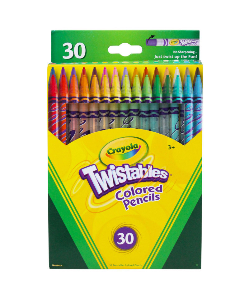 Kids can never have enough colors. With this set of Twistables™, young artists can fully express themselves with the wide variety of 30 different hues. Whether they're using the 2mm pencil lead to draw intricate line art or blend colors in a sunset, kids will have all the colors they need to create vibrant illustrations. The fun twistable barrels are designed to keep you coloring without interruption. When your pencil tip starts to disappear, just twist up the plastic barrel for more. You'll never need an external pencil sharpener. A sturdy plastic barrel protects the pencil inside, so you never have to worry about coloring too hard and breaking your art tools. The barrel is clear so you can always tell exactly how much color you have left. It also preserves your colored pencils when you store them. Just twist the pencil tips back down and pack them away with your other art supplies. Each pack includes 30 Twistables™ Colored Pencils.